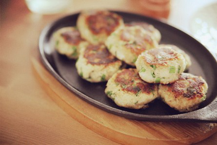 2.捏出几个圆形的小饼,入平底锅,用黄油来煎,中火,至两面金黄即可。味道棒棒哒